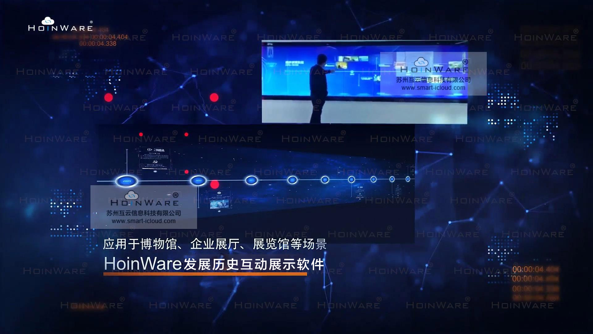 HoinWare®发展历史互动展示软件是一款针对大尺寸触控LED大屏/投影大屏研发的专业交互软件。软件化繁为简,实现内容智能化导入和识别,背景图、时间点及相应展示内容任意替换,无需修改软件,可快速配置出适合展馆、展厅展示的主题场景。